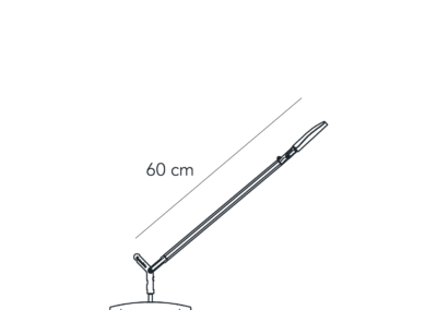 La sua silhouette slanciata, ispirata alla figura di un'asta per tende, cattura lo sguardo e incanta l'osservatore con la sua grazia sospesa. La struttura in metallo leggero si fonde armoniosamente con l'elemento luminoso, creando un equilibrio sublime tra forma e funzione.